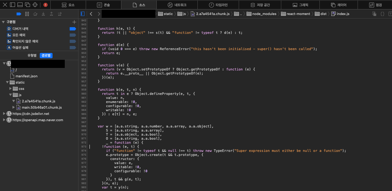 -> 프론트에서 설치한 react-moment 라는 모듈에서 에러를 뱉고 있었고, 우리가 인지하지 못한 클래스가 사용되고 있었음